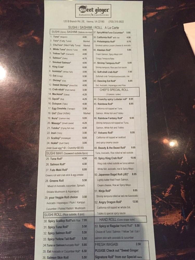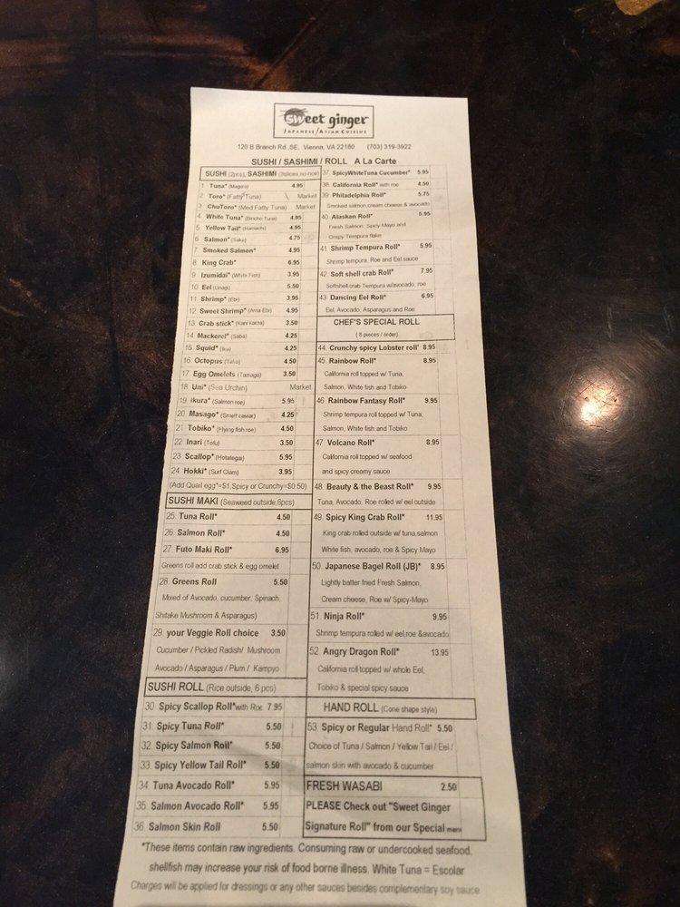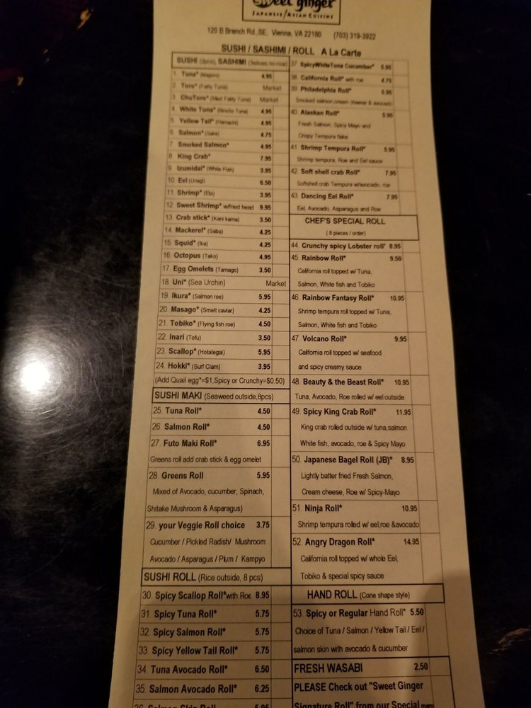 Introducing Sweet Ginger, a Japanese-Asian fusion sushi bar located in Vienna, VA. Offering a range of utilities such as reservations, takeout, and catering, Sweet Ginger caters to a diverse clientele. Customers rave about the quality and quantity of food, with highlights including the delectable Bento Box A with beef teriyaki and flavorful sushi rolls like the toro sashimi and volcano roll. The attentive waitstaff adds to the overall dining experience, ensuring that customers feel welcomed and satisfied. With fresh ingredients and consistent quality, Sweet Ginger stands out as a favorite sushi spot in the DMV area. Whether you're a sushi aficionado or looking to explore Asian cuisine, Sweet Ginger's menu offers something for everyone.